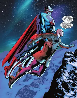 Overhuman: The Last Days of Lex Luthor #1 Overhumanがニュースを発見してキックオフします。レックス・ルーサーは、クリプトナイトの実験が急速な細胞崩壊を引き起こした後に死にかけています。レックスの時間がなくなったため、彼はクラークを助け、レックスがOverhumanが全世界の支援に同意することに同意して彼を助けています。Overhumanが治療法の捜索を開始すると、彼は彼のスモールビルのレックス・ルーサーとのクラーク・ケントの過去を振り返ります。フラッシュバックは、彼らが共有した緊張していない友情を示しており、二人とも孤立感と憧れの深い感情があることを明らかにしています。現在、Overhumanはレックスをボトル入りのカンドールの都市に連れて行き、支援を求めています。それが失敗すると、彼はファントムゾーンを試します。何もうまくいかないようで、残念ながらレックスにとって、彼の病気は彼が予想していたよりも急速に広がっています。