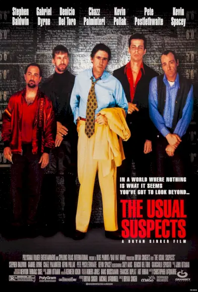 Skrevet af Christopher McQuarrie og instrueret af Bryan Singer, The Usual Suspects er en mysteriefilm med Stephen Baldwin, Kevin Spacey og Benicio del Toro. Plottet udspiller sig under et forhør, hvor en svindler taler med efterforskerne om, hvad der skete, idet han er en af kun to mænd, der overlevede en massakre i havnen i Los Angeles.