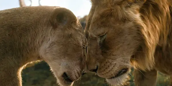 Mufasa og Afia rørende hoveder i Mufasa: The Lion King (2024)