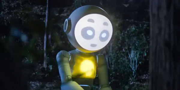 Solrig the robot with a bright light inside it in SUNNY